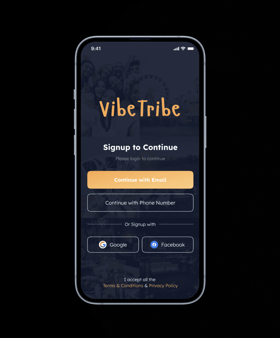 VibeTribe connects people through shared activities, swipe-based matching, and small group meetups made easier with exclusive group discounts.